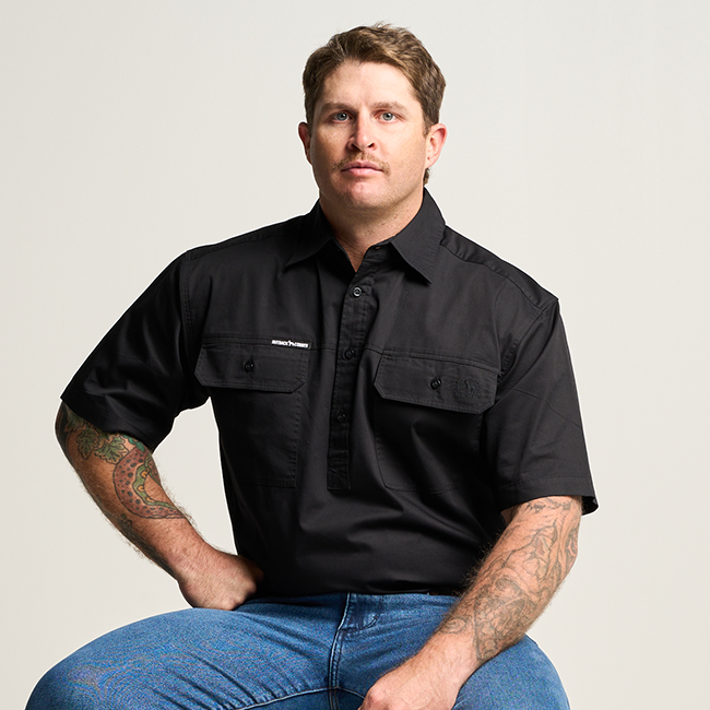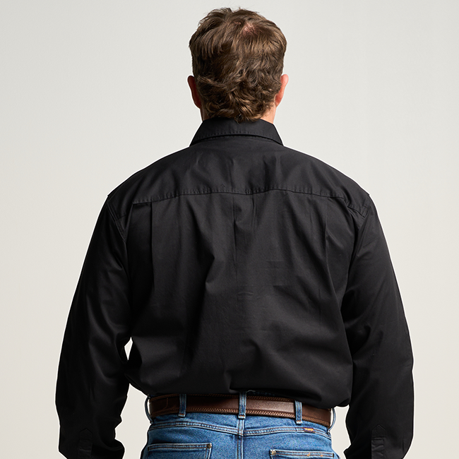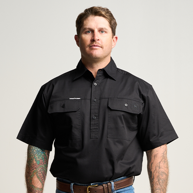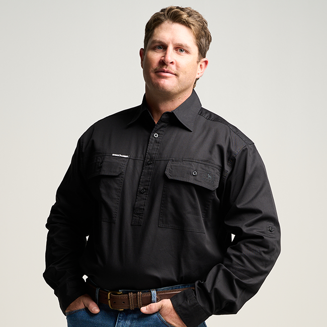 KILCOY | Mens Half Button Long Sleeve Work Shirt - Black