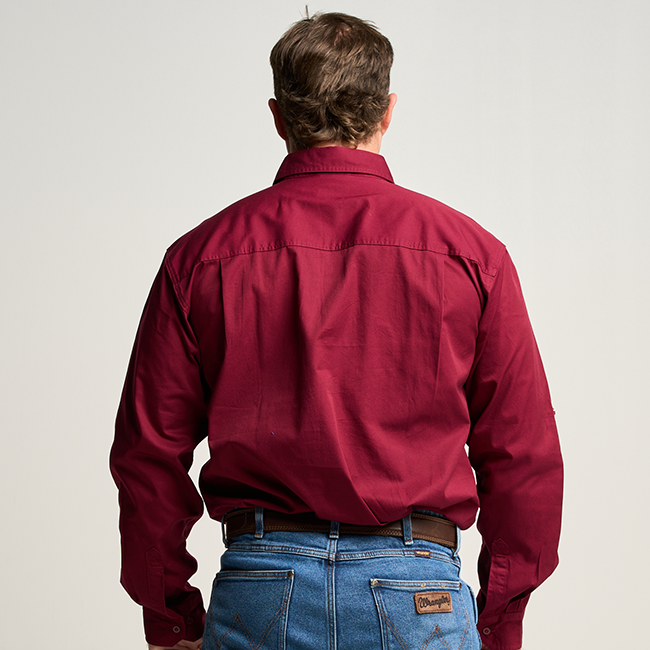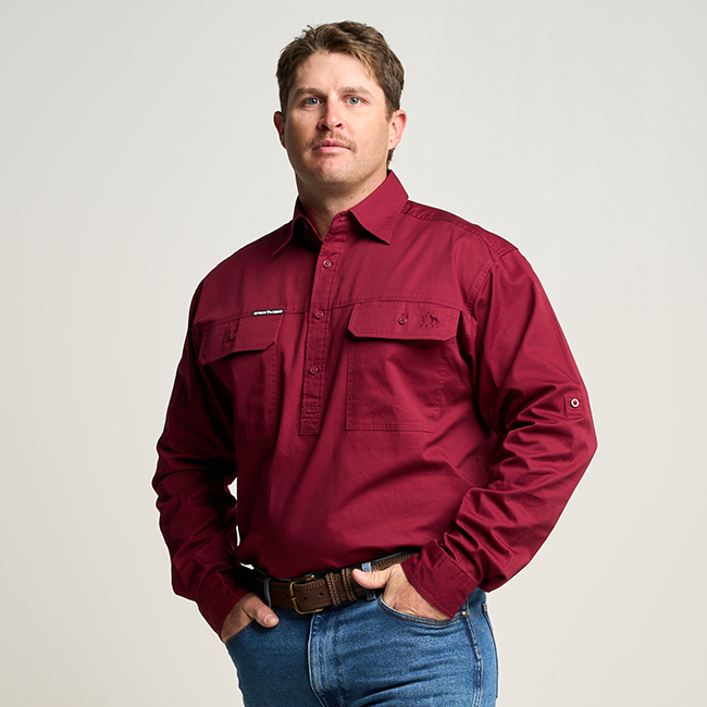 KILCOY | Mens Half Button Long Sleeve Work Shirt - Burgundy