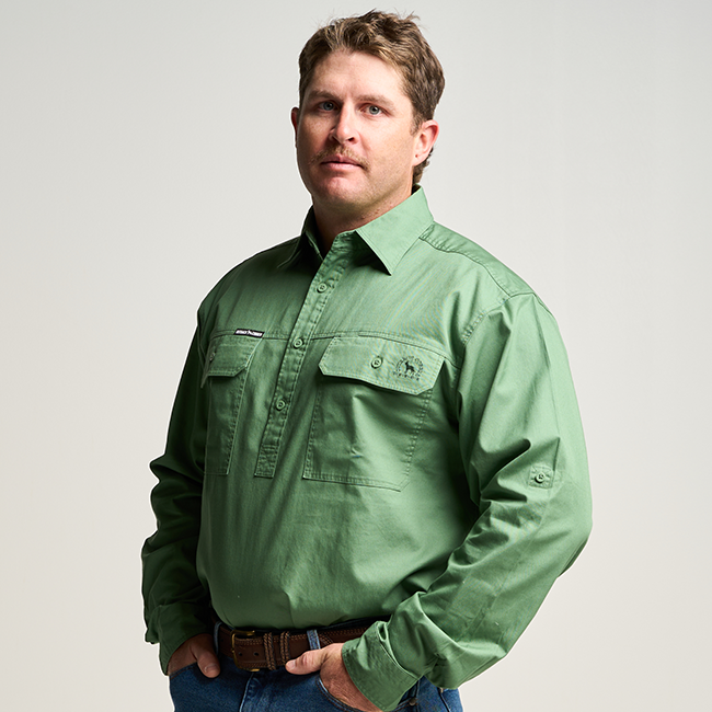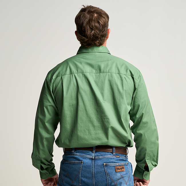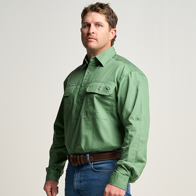 KILCOY | Mens Half Button Long Sleeve Work Shirt - Gum Leaf Green
