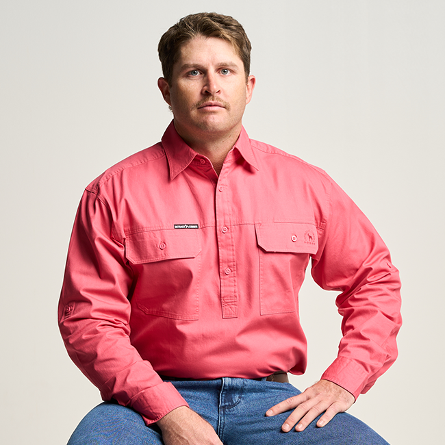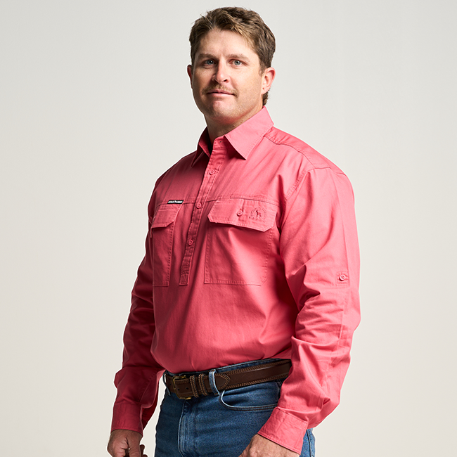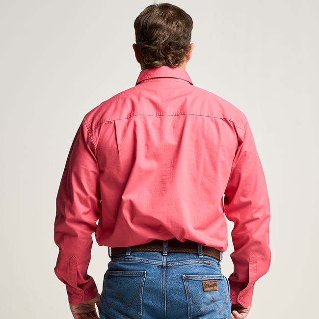 KILCOY | Mens Half Button Long Sleeve Work Shirt - Hibiscus Pink