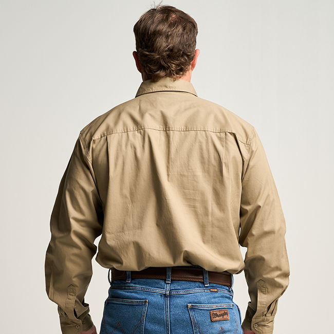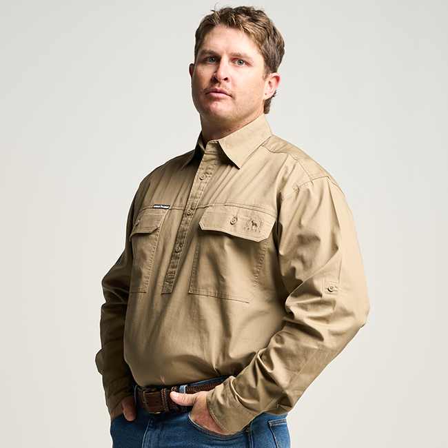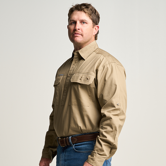 KILCOY | Mens Half Button Long Sleeve Work Shirt - Khaki