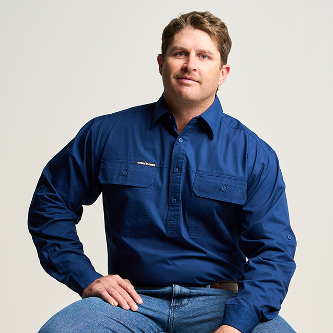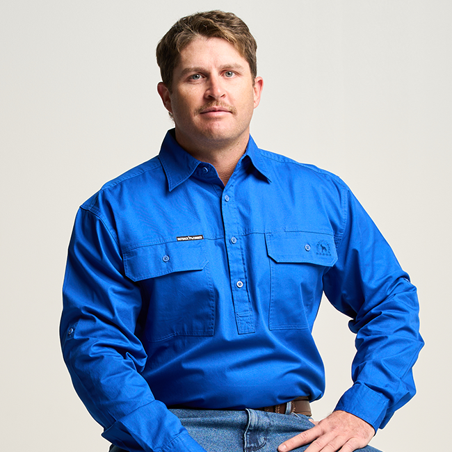 KILCOY | Mens Half Button Long Sleeve Work Shirt - Royal
