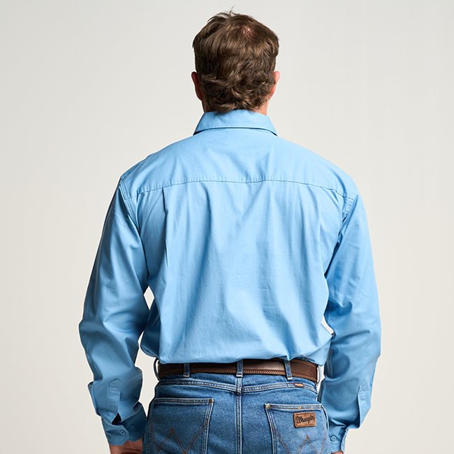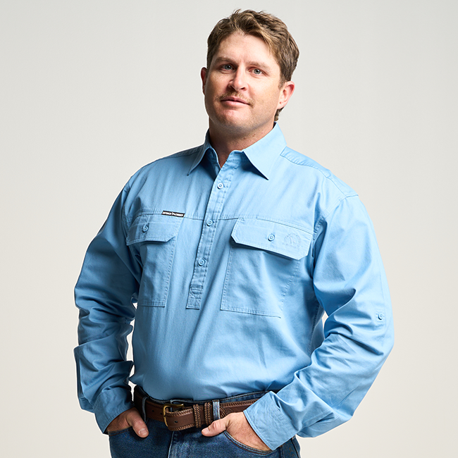 KILCOY | Mens Half Button Long Sleeve Work Shirt - Sky Blue