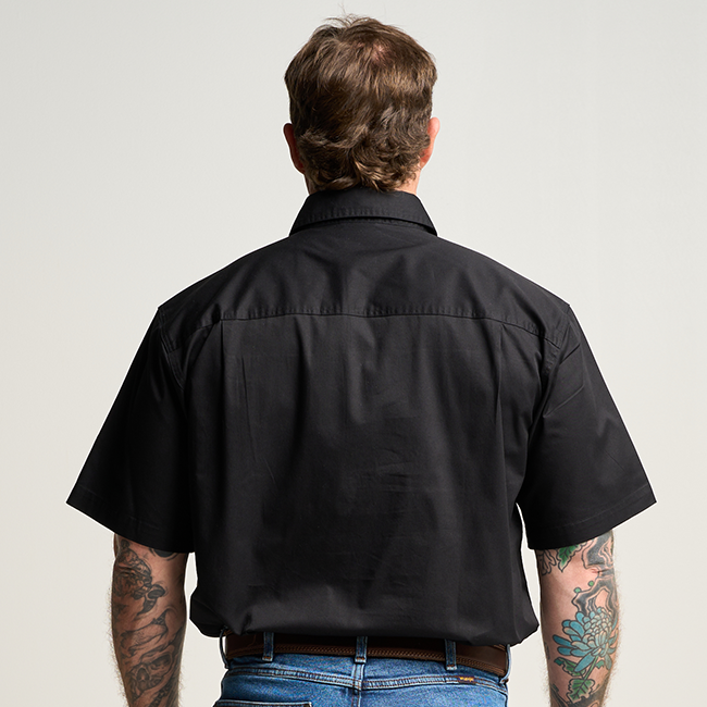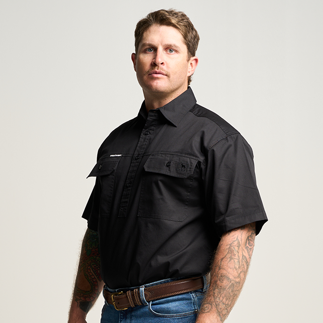 KILCOY | Mens Half Button Short Sleeve Work Shirt - Black