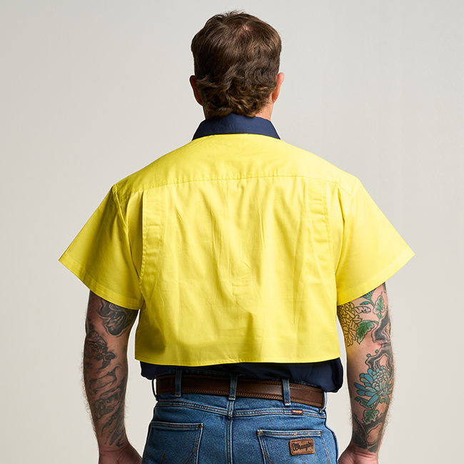 BRAHAM | Mens Half Button Short Sleeve Hi Vis Work Shirt - Yellow / Navy