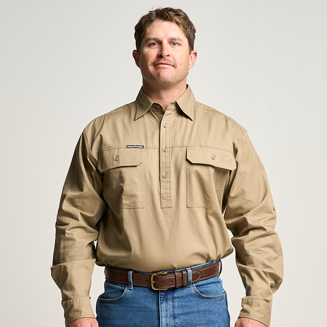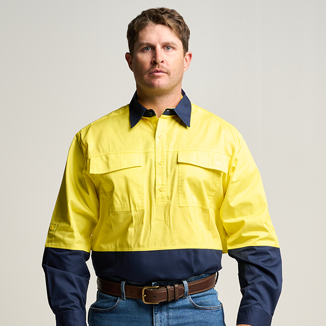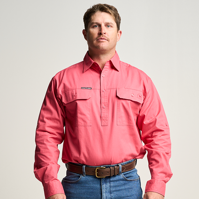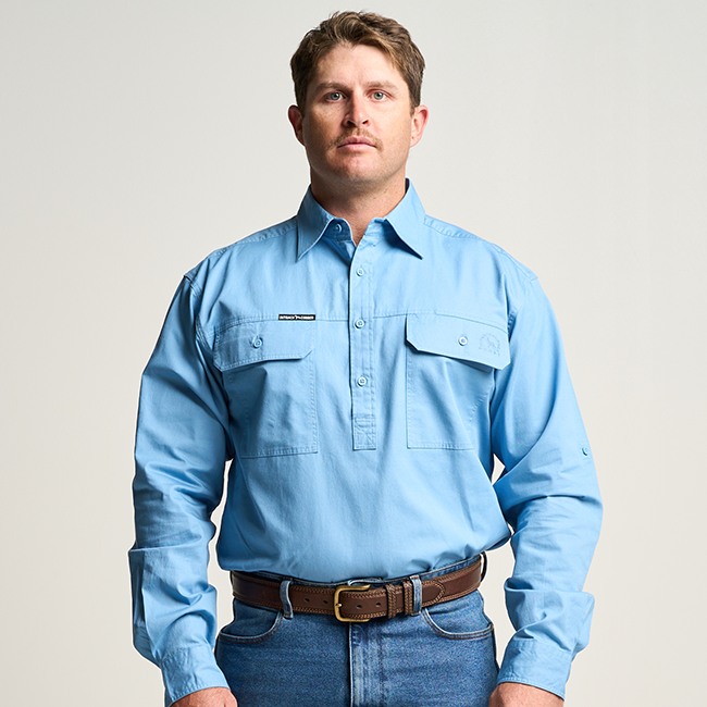 SOMERSET | Womens Half Button Long Sleeve Work Shirt - Royal